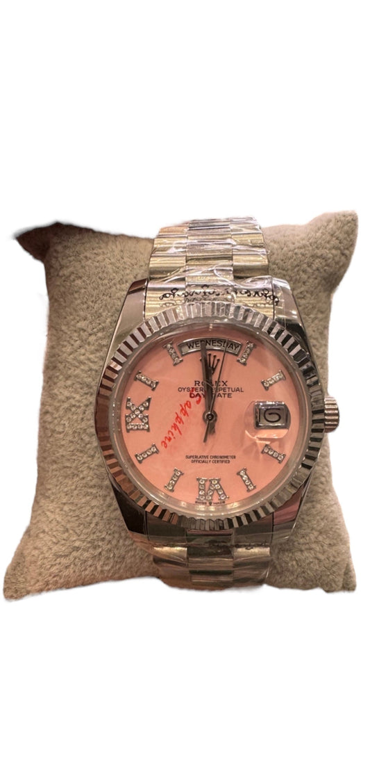 Rolex Day-Date 36 Platinum Pink Opal Diamond Index Roman 9 Dial - President Bracelet