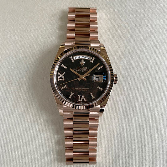 Rolex Day-Date 36 Everose Gold Eisenkiesel Roman Diamond Dial