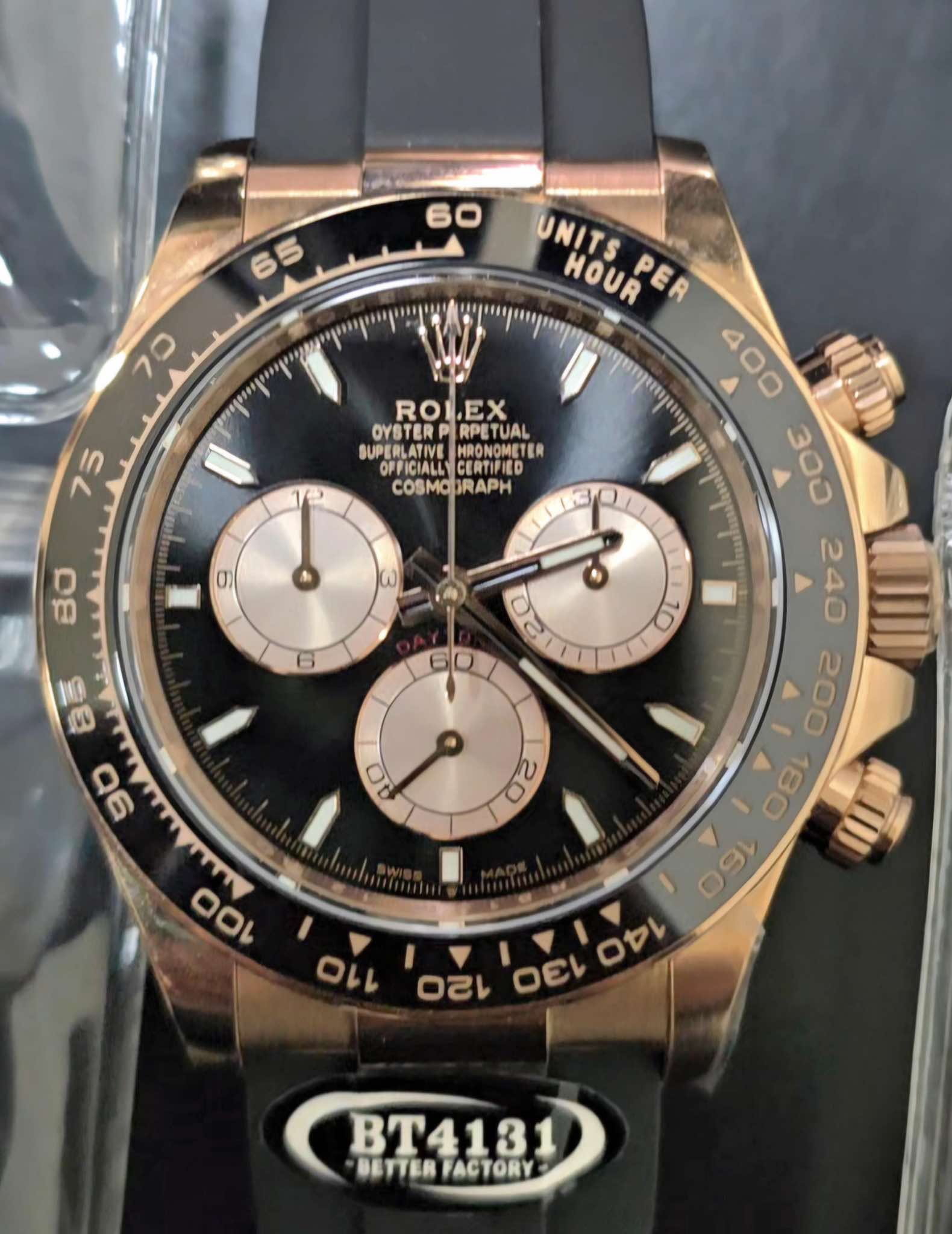 Clean Rolex Daytona Black And Pink Dial Everose Oysterflex 40mm