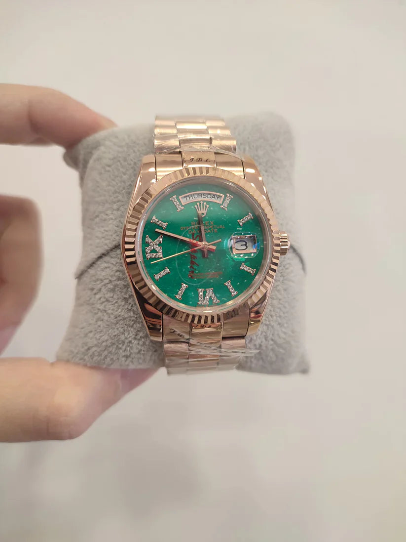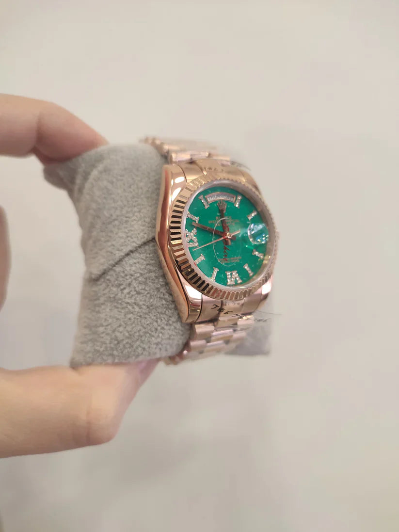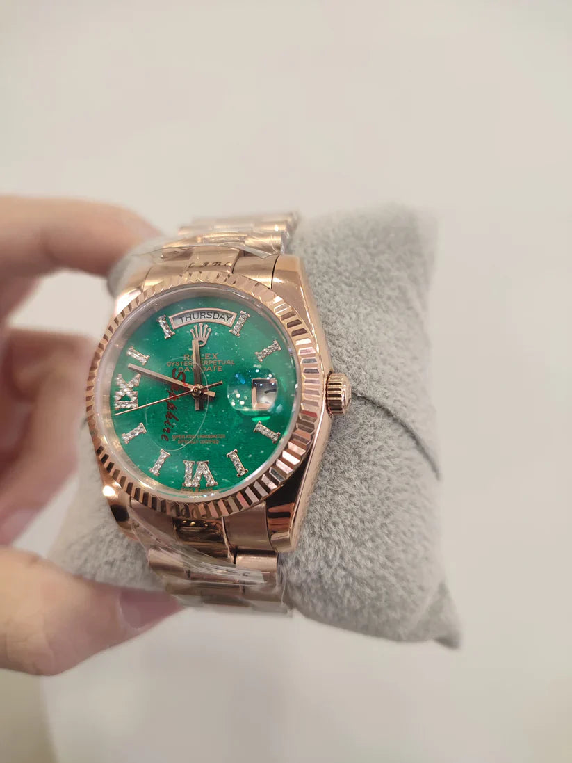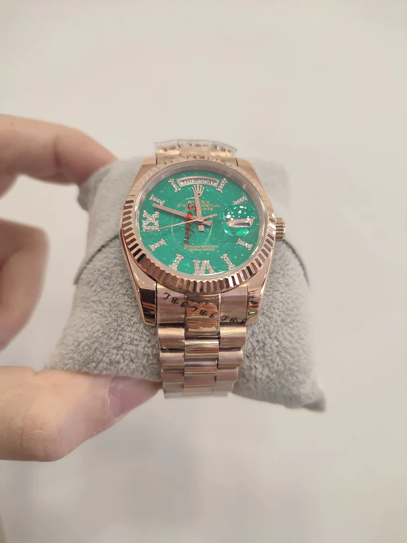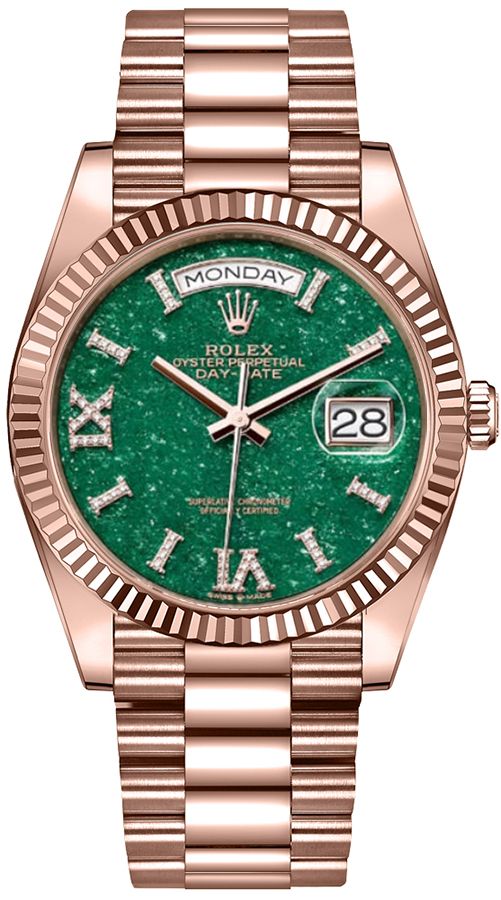 Rolex Day-Date 36 Everose Gold Aventurine Roman Diamond Dial
