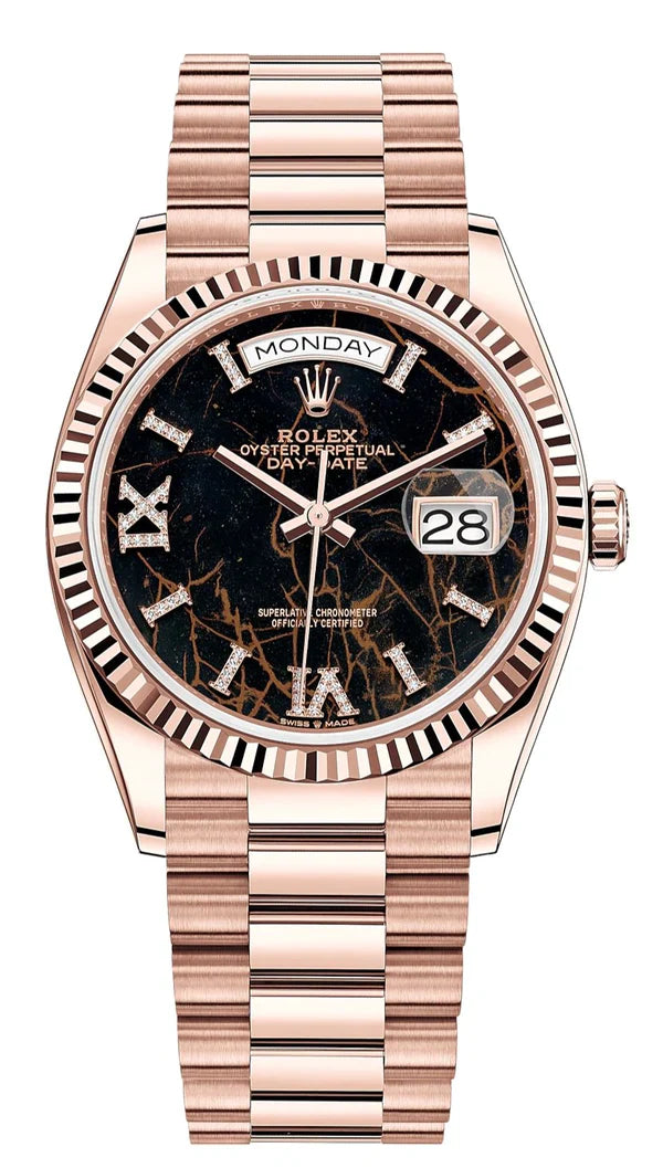 Rolex Day-Date 36 Everose Gold Eisenkiesel Roman Diamond Dial