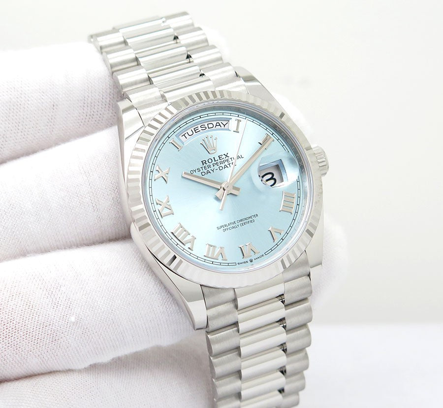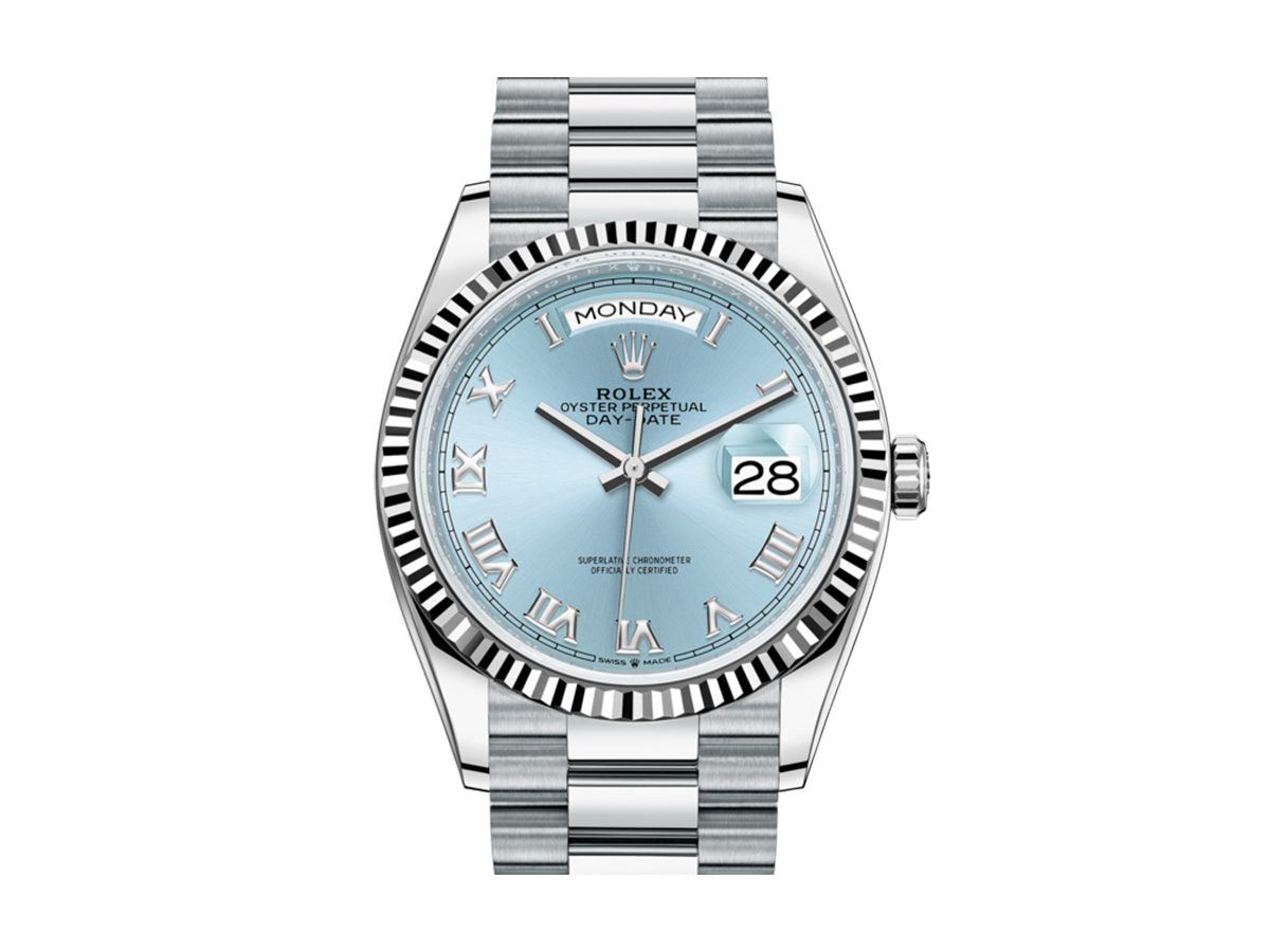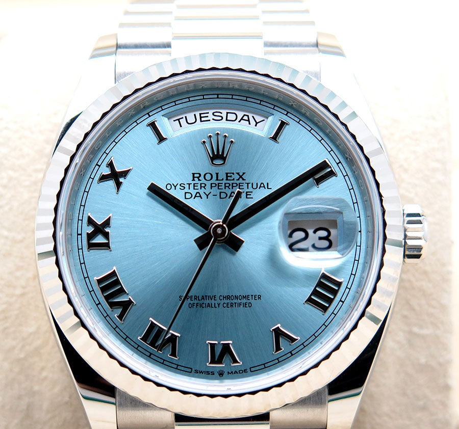 Rolex Day-Date 36mm President Platinum Watch Ice Blue Roman Dial