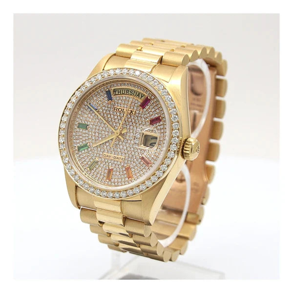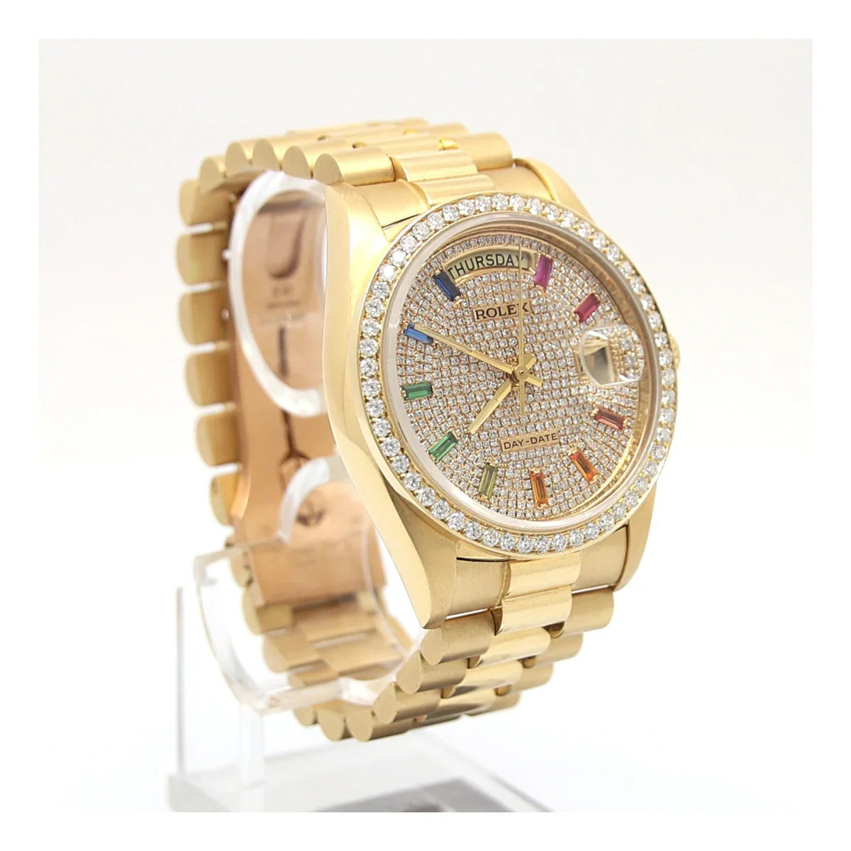 Rolex Day-Date 36mm Yellow Gold Paved Rainbow