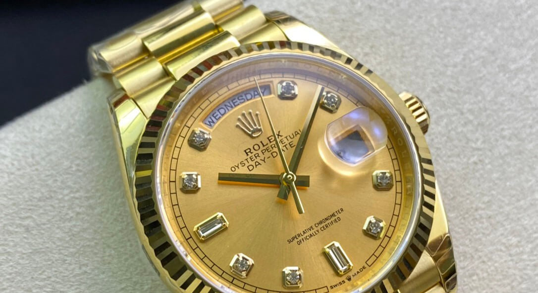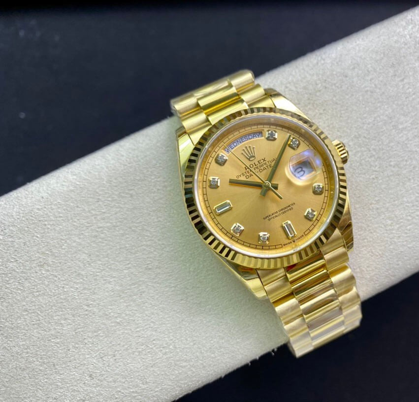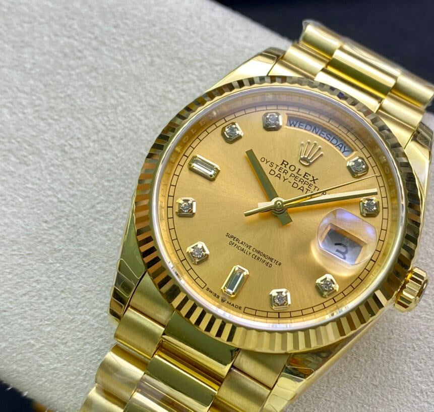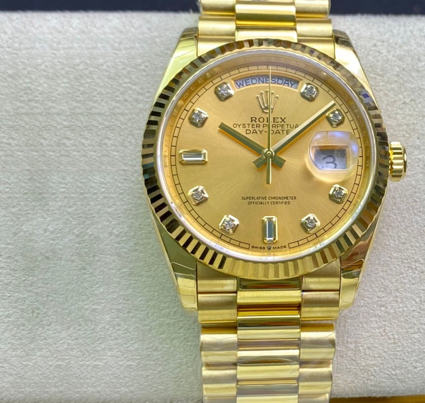 Rolex Day-Date 36mm Yellow Gold President Champagne Baguette Dial