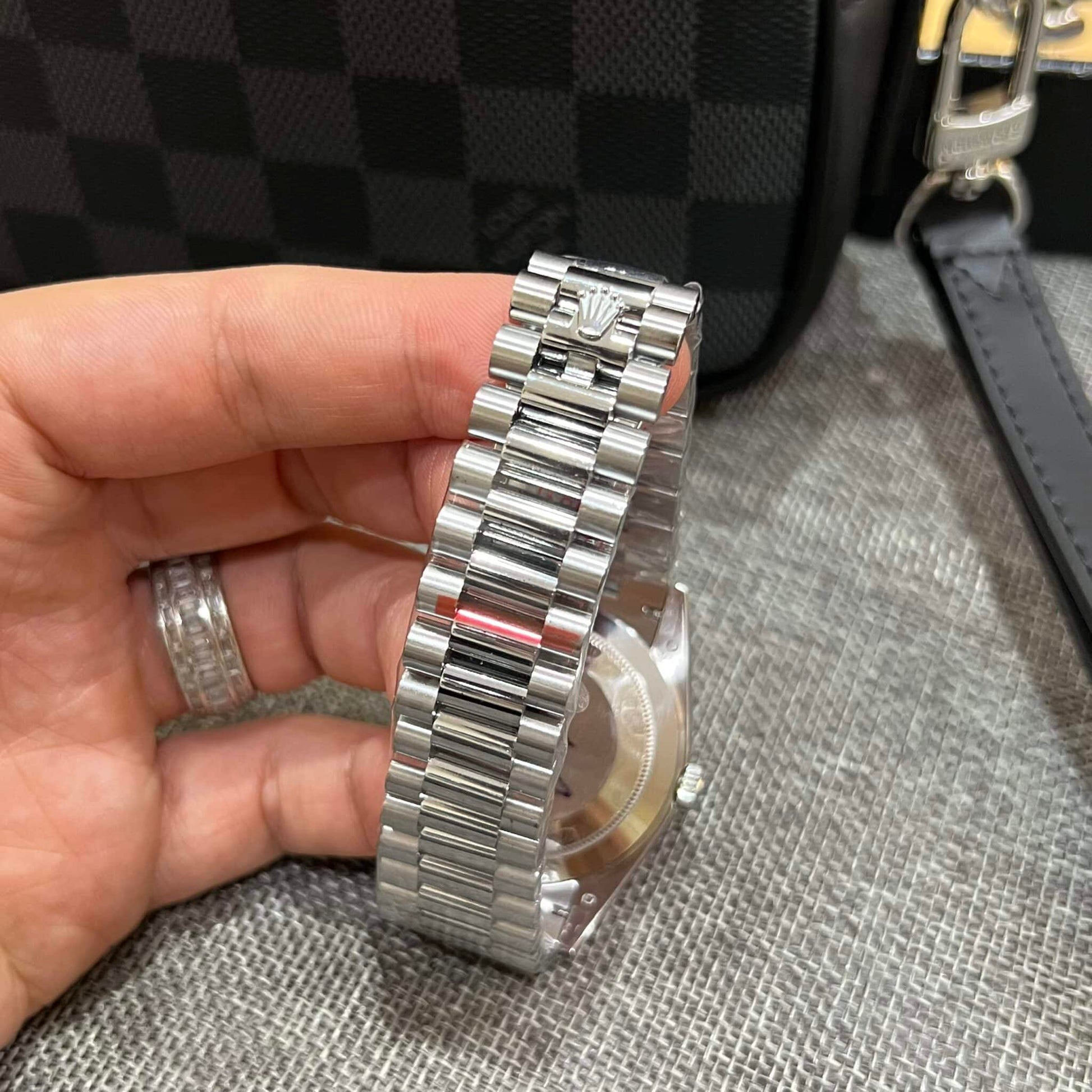 Το διαχρονικό μοντέλο Replica Rolex Day-Date Steel Dark Rhodium Dial President έχει αντιγραφεί με τις τελευταίες και πιο σύγχρονες τεχνικές δημιουργίας πιστών αντιγράφων Replica AAA, έτσι ώστε ακόμη και αν ανοιχτεί από οποιοδήποτε κοσμηματοπωλείο, ο μηχανισμός (διαθέτει Perpetual Type Rolex 3255) να είναι όμοιος όπως τα γνήσια Replica . Κάθε μέρος του ρολογιού μέσα και έξω έχει αναπαραχθεί με τα ακριβή γραμμάρια που έχουν μεμονομένα και συνολικά τα εξαρτήματα του γνήσιου Replica . Έχει λειτουργία σε ώρα, λεπτό και δευτερόλεπτο και φέρει ένδειξη ημερομηνίας. Το σώμα είναι κατασκευασμένο από ανεξίτηλο ατσάλι (Stainless Steel), υποαλλεργικό με απόχρωση Τ20 και έχει 10 έτη εγγύηση χρώματος. Το μπρασελέ του έχει αναδιπλούμενο κούμπωμα ασφαλείας Oysterlock με EasyLink 5 χιλιοστών. Είναι αδιάβροχο, στεγανοποιημένο έως 10 bar και έχει ρυθμιστική βίδα με ανάγλυφη κορόνα. Ο ζαφειρένιος κρυστάλλος είναι αρκετά ανθεκτικός σε γρατσουνιές και έχει μεγέθυνση (επιπέδου 2.5x) πάνω από την ημερομηνία.