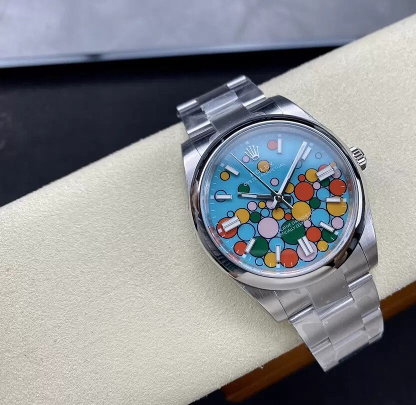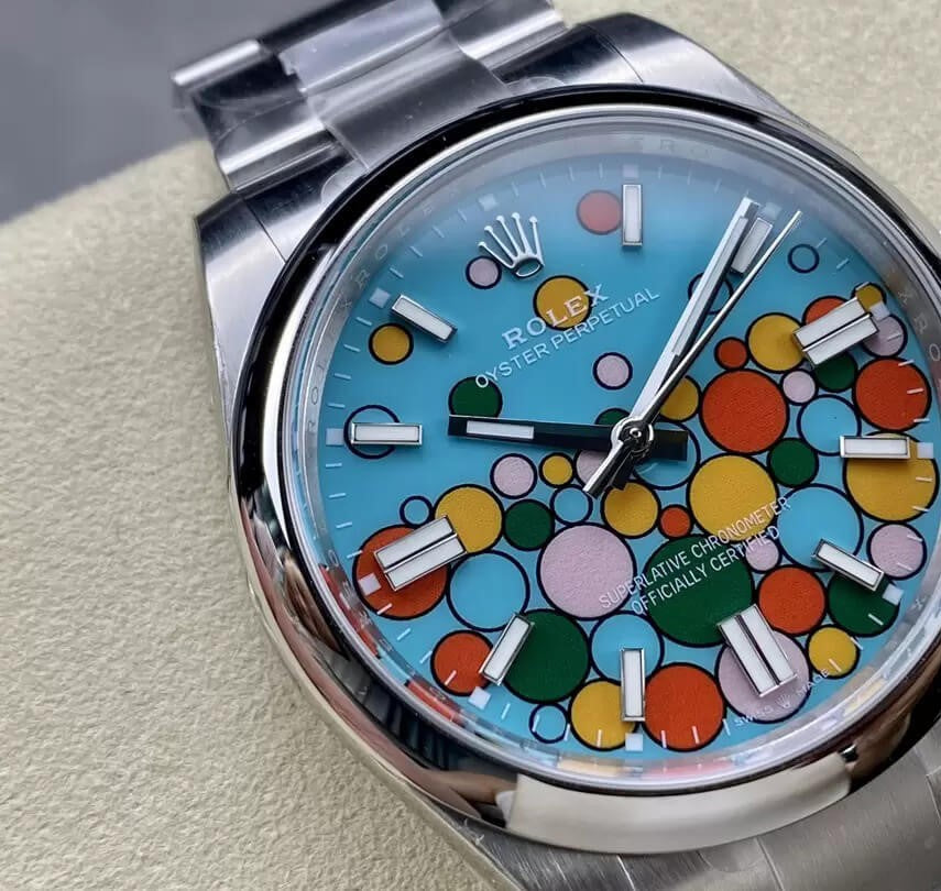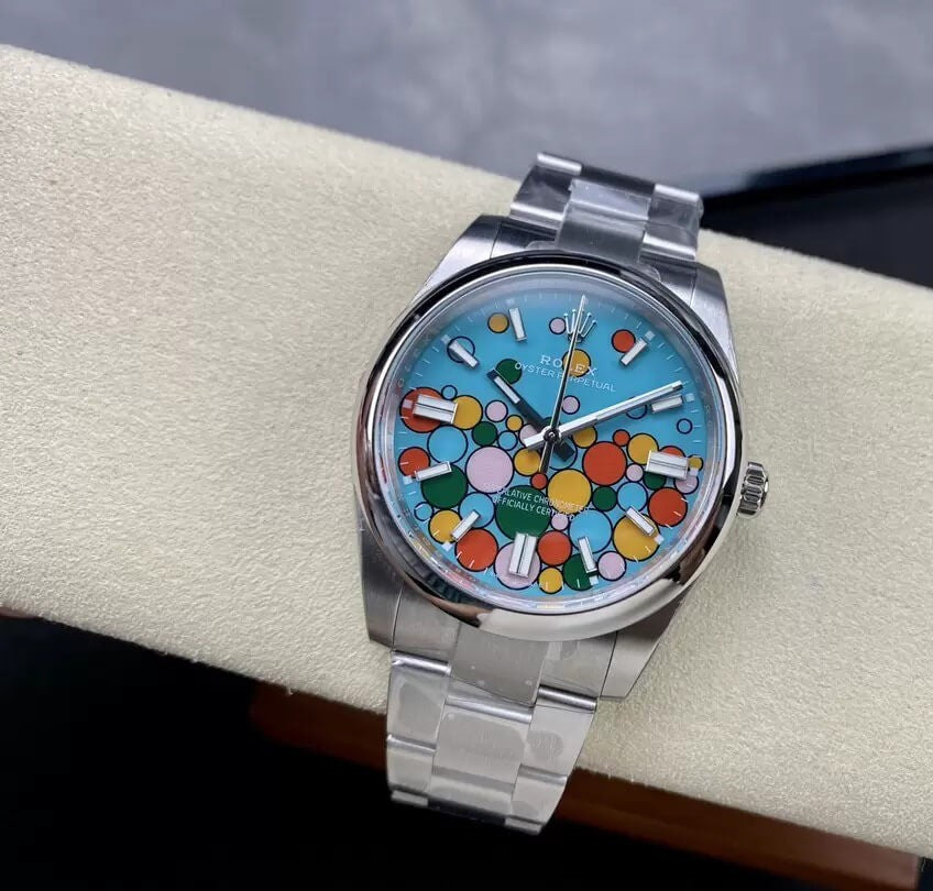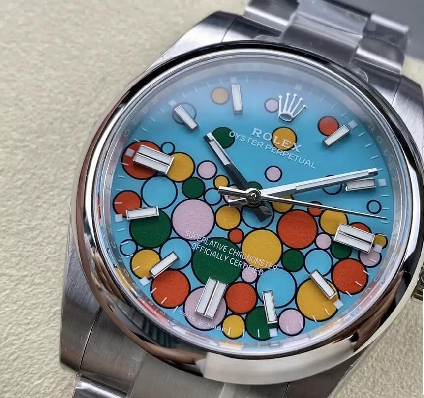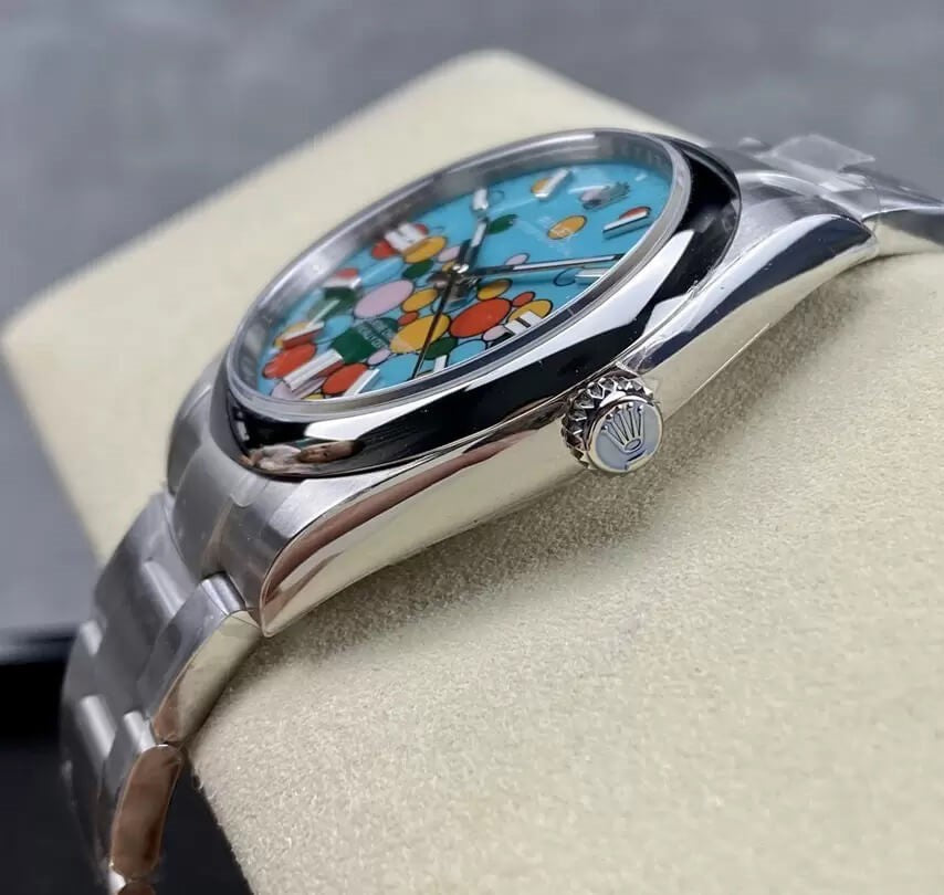 Rolex Oyster Perpetual 41mm Turquoise Celebration Motif Dial