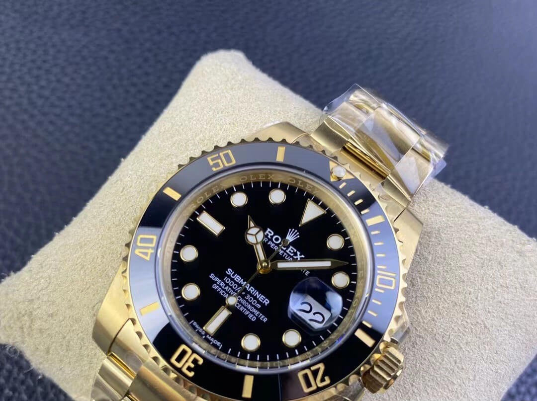 Το διαχρονικό μοντέλο Replica Submariner Date Yellow Gold Black Dial Ceramic Bezel 41mm έχει αντιγραφεί με τις τελευταίες και πιο σύγχρονες τεχνικές δημιουργίας πιστών αντιγράφων Replica AAA.Κάθε μέρος του ρολογιού μέσα και έξω έχει αναπαραχθεί με τα ακριβή γραμμάρια που έχουν μεμονομένα και συνολικά τα εξαρτήματα του γνήσιου Replica.