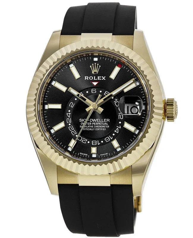 Sky-Dweller Black Dial Yellow Gold With Rubber